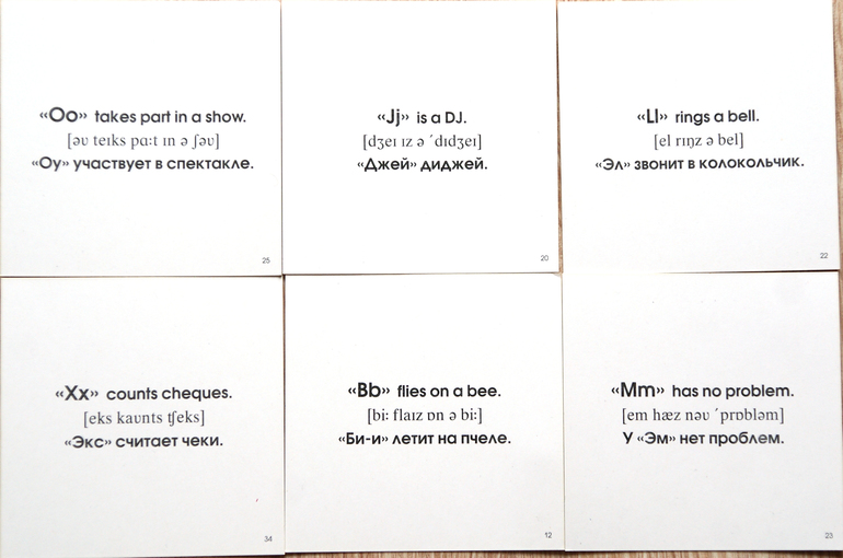 У нас такие есть и на русском языке. Для составления слов и закрепления алфавита - просто прекрасный материал!