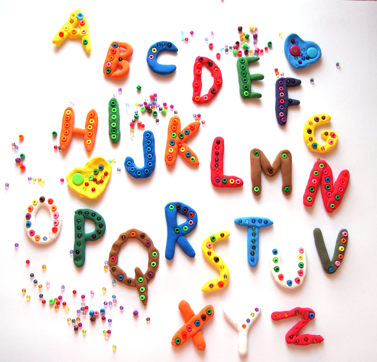 А сегодня соорудили вот такую азбуку из пластилина и бусин.