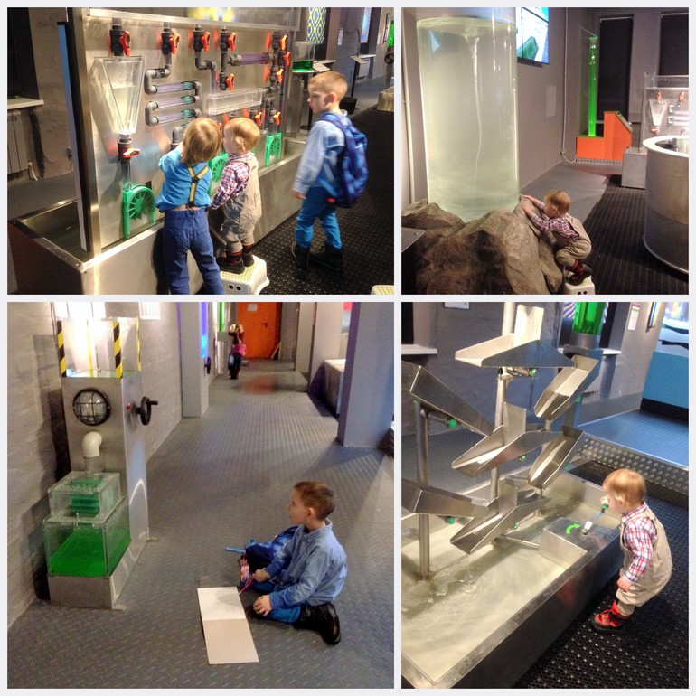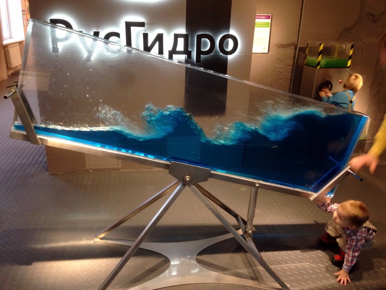 Из всех новинок самая впечатляющая - водная комната! Огромное поле для экспериментов по моделированию волн и цунами, работы шлюзов, водяной мельницы, винта архимеда … Дети там пропадают всерьез и надолго!
