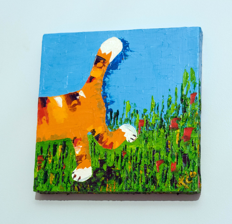 Вот такая картинка-шутка нарисовалась на одном дыхании полностью мастихином. Вижу ее в детской или прихожей, можно повесить рядышком, а можно с разных сторон двери или окна.