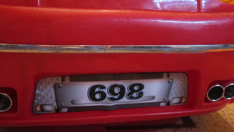 Максимальная скорость - ок. 10 км/ч. Напряжение - 6 Вольт. Единственный недостаток - небольшая потертость на заднем бампере.