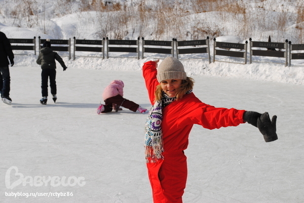 Вчера первый раз в этом сезоне встала на коньки.Я, мой муж и лялька были на катке.