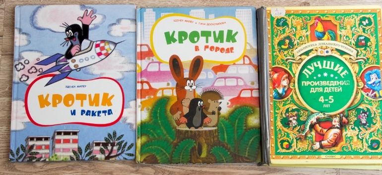 Первые 2 про кротика сразу полюбились и очень часто перечитывали, так они часто смотрели этот мультик по утрам когда собирались в садик.