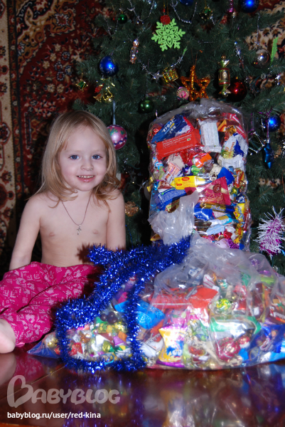 В этом году количество детских конфетных подарков из разных источников побило все прошлые рекорды. Мы насчитали их 19 штук, и еще один малюсенький, 20-й подарочек, 50гр. весом, из Маришкиного садика.