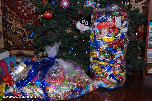 А дети уже объелись, теперь эти конфеты почти пинают из угла в угол, играют в "конфетные водопады" , ковыряются в мешках с унылым видом в надежде выискать "ну хоть одну приличную конфетку" )))))).