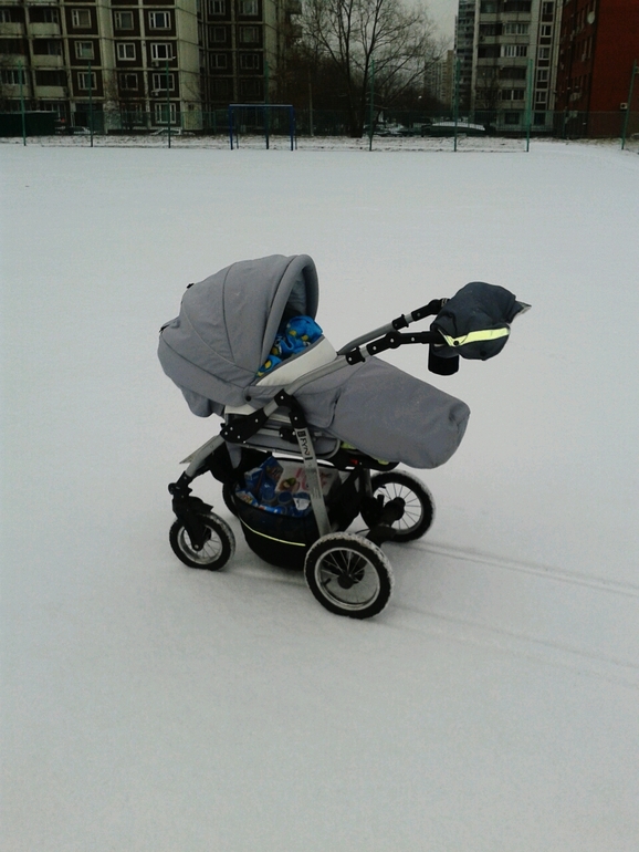 Отлично погуляли сегодня до массажа! Моя крошка-Джеда, с нагруженной доверху корзиной пюрешек и "молочки", перла по свежевыпавшему снегу как танк. Чуть просела на пружинах из-за лишней тяжести, но ехала легко и уверенно. И снежинки летали, и сын румяный спал, и в унтах тепло. Красотень:)