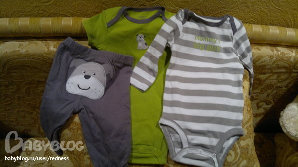 Я тоже заказала сет от Картерс с собакой на попе:) а велюровый слип с енотом чей? Очень клевый!))))