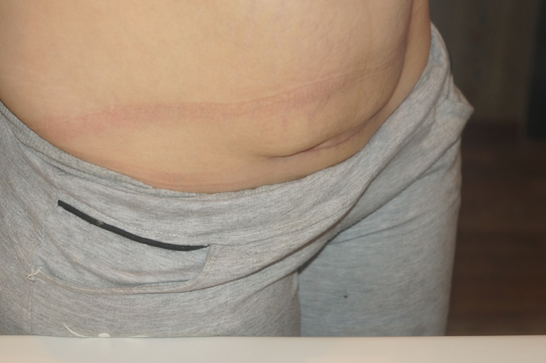 Причем, чем больше худею, тем больше именно складка эта отвисает, как мне кажется. И еще ощущение, что прямо над швом пропала чувствительность у живота.И целая куча фиолетовых растяжек по бокам — во время беременности их и не было столько.. Откуда взялись?(((Я все равно стараюсь носить бандажи и утягивающее белье. Определенный эффект есть. Ну и кремчики уже начала применять для подтягивания кожи...