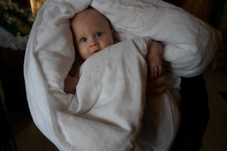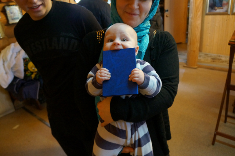 25 января крестили Давида,слава Богу в этот раз прошло все хорошо. в маленькой деревянной часовне в пятером :крестные родной братишка мужа и его двоюродная сестра и мы. Вел на крещении себя великолепно. Было в эти дни очень холодно,но не заболели тьфу-тьфу.