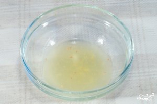 Добавьте к лимонному соку горчицу, чеснок выдавленный через пресс, молотый перец. Хорошо перемешайте.
