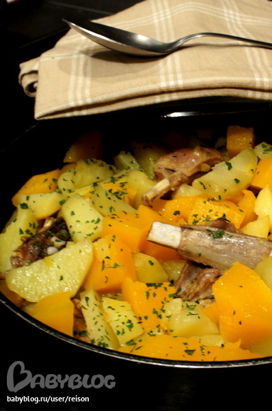 Рагу из бараньих ребрышек с картофелем и тыквой