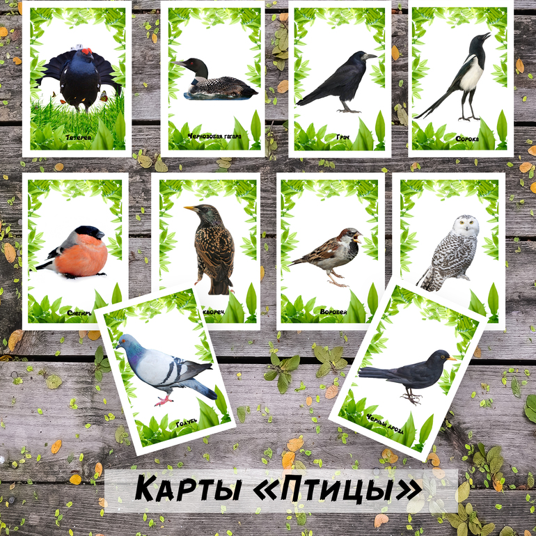 с одной стороны,это карточная игра. Карточки можно использовать для изучения животных и птиц, а с другой - это игра путаница.
