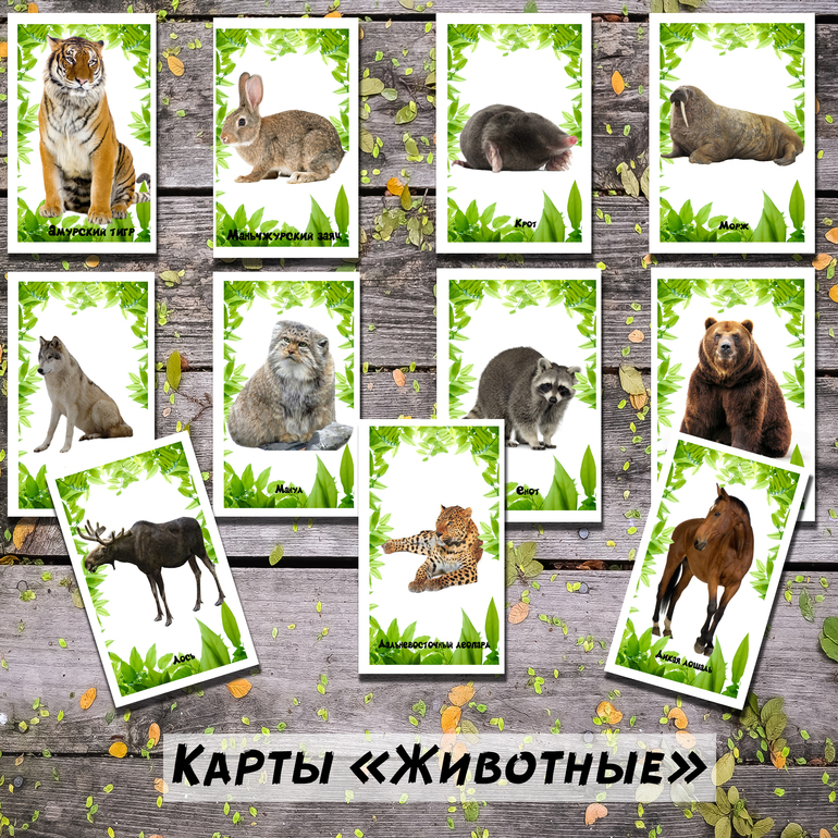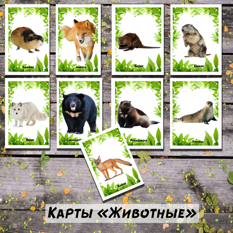 - Вариант игры с малышами - начните с рассматривания карточек, пусть он познакомится с многообразным животным миром нашей страны.