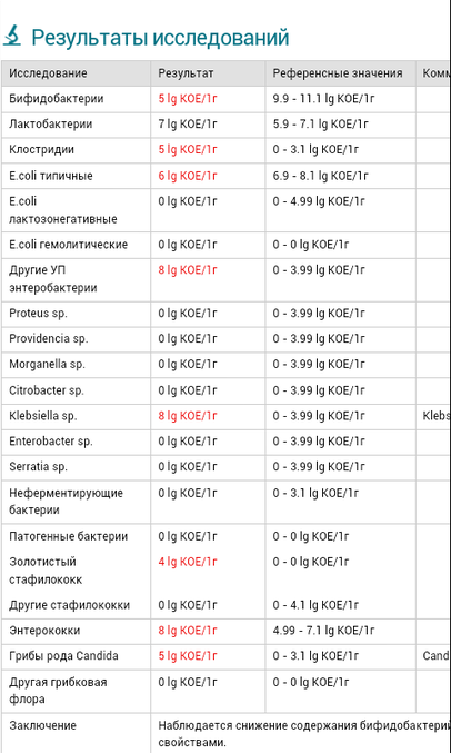 клебсиелла, клостридия, кандида, стафилококк, мало очень полезных бифидобактерий, еще разная хрень. бля! целый зоопарк был в каках моего маленького ребенка!!! ясный фиг начатое мной лечение нам помогает!