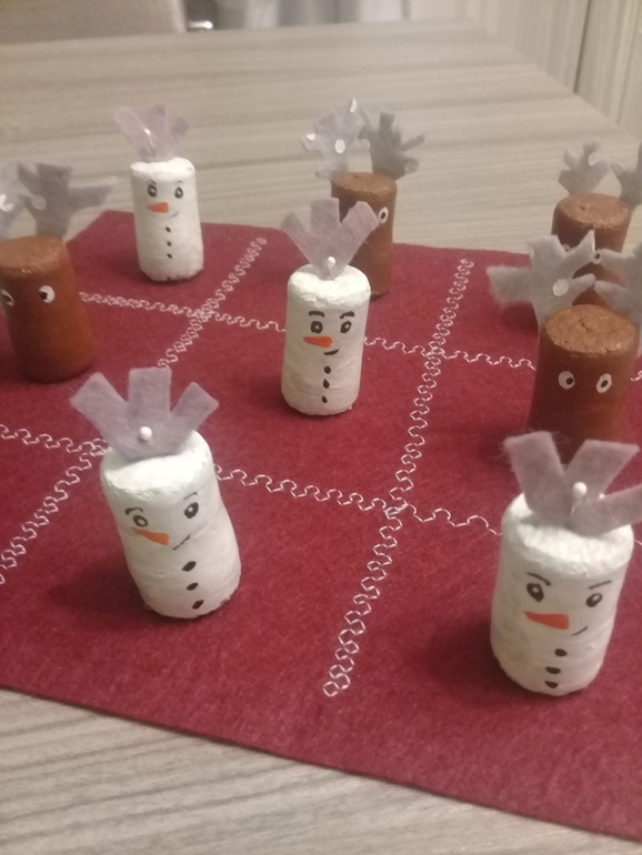 Смастерили "крестики -нолики" новогодние из пробок и фетра.