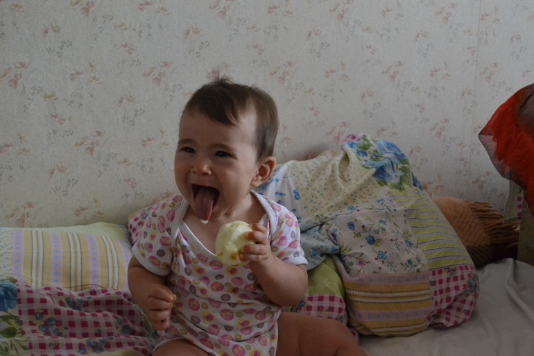 ПрикормКак-то так получилось, что я только на днях дала Соломийке яблоко. Она его грызёт.