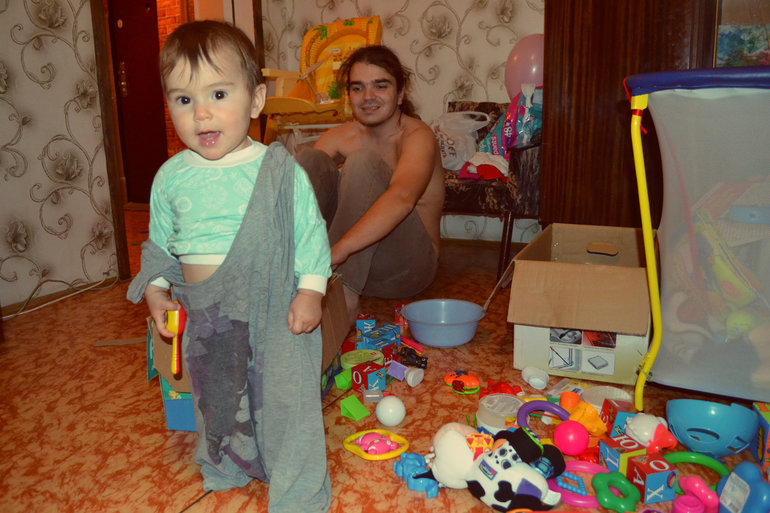 Большинство игрушек лежат без дела, она может их перебирать в ящике, но играется только бытовыми предметами. Постоянно что-то переносит с места на место. Складывает в миски и всякие ёмкости более мелкие предметы, очень любит большие баклажки и вёдра ,раскладывает по полкам всякий свой скарб.