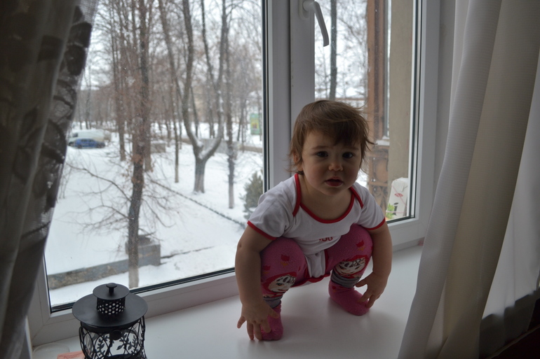 Соломия день за днём"Окне! Нё-нё-нё!!!" (что в переводе означает "Ещё раз увижу тебя на окне ,дам по попе!") Весь день сегодня слышу из комнаты эту фразу, аутотренинг. Но помогает не всегда)))