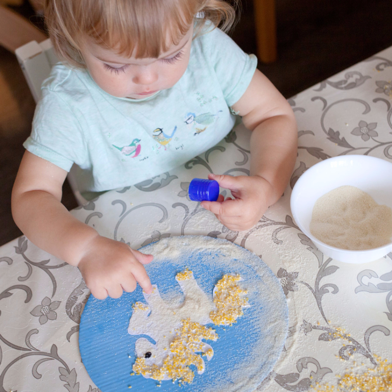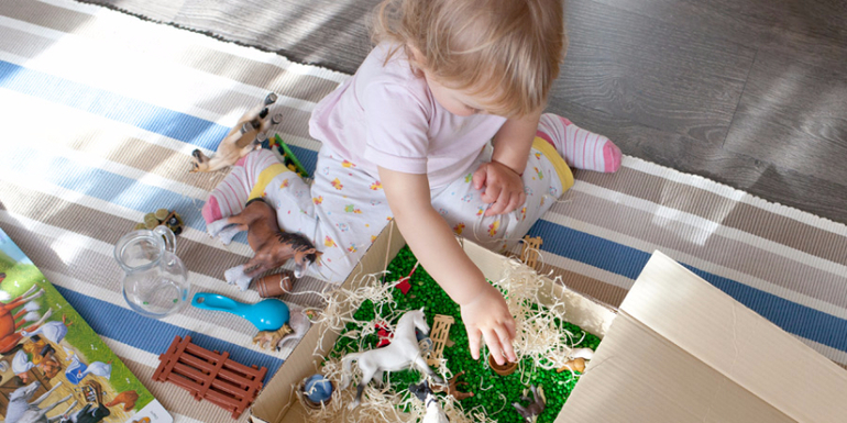 Сенсорные коробки позволяют ребенку познакомится с разными текстурами, попробовать их на ощупь, развивают мелкую моторику, знакомит со свойствами предметов. Также мы включаем сюжетно-ролевые игры (кормим животных, они у нас разговаривают между собой и т.д). Для детей постарше можно подключить счет. Наполнение может быть абсолютно любым и не обязательно красивым, т.к. для детей такого возраста это вообще не играет никакой роли (в моем случае это просто мой бзик :)