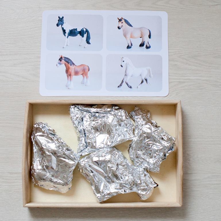 В рамках знакомства с фермерскими животными на прошлой неделе мы играли с Лошадками. Для этого как всегда я делала сенсорную коробку в виде конюшни по мотивам книги издательства Улыбка "Учим новые слова"
