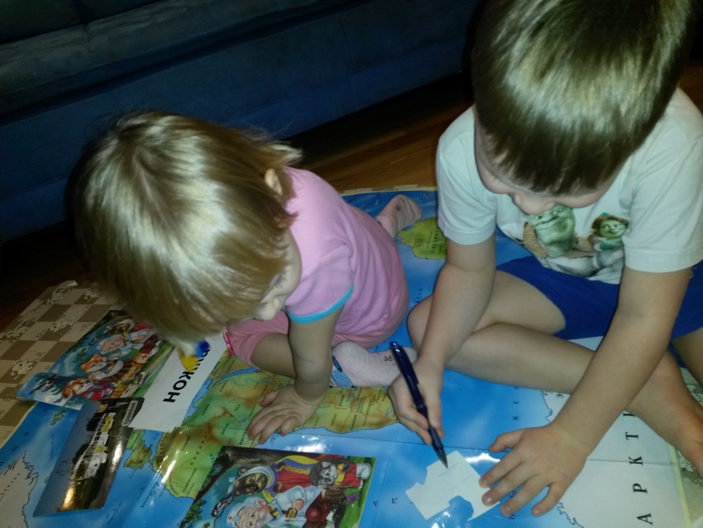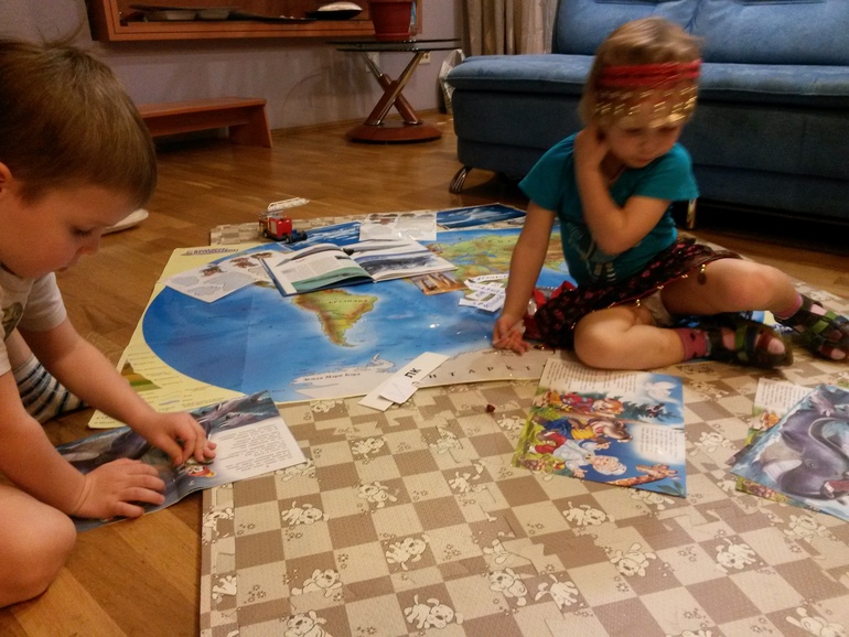 На протяжении погружения в Африку смотрели мульты: Айболит, кругосветное путешествие Хрюши и Степашки, уроки т. Совы по географии. Ну и ребятня взяла в арсенал своих игр сейчас игру в крокодилов и спасение кого-чего-либо:)))