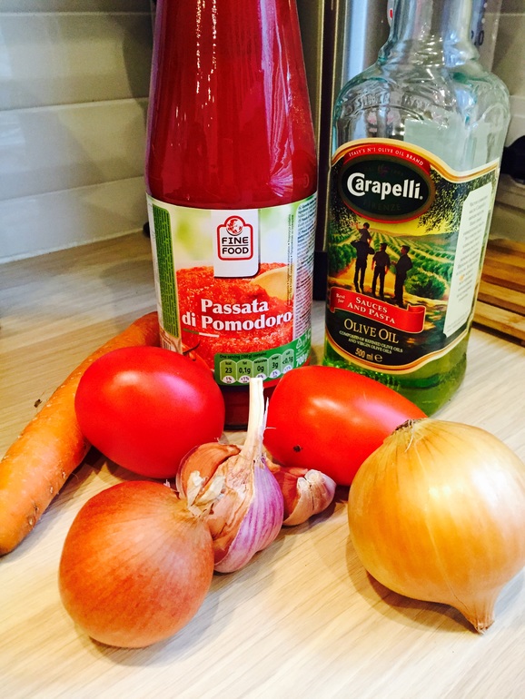 На фото - "пассата ди помодоро" - это перемолотые томаты в собственном соку без всего. Типа томатная паста, но в сто раз круче. Именно помидорное пюре. Открываешь - а там реально свежим помидором пахнет. Вся бутылка уйдет.