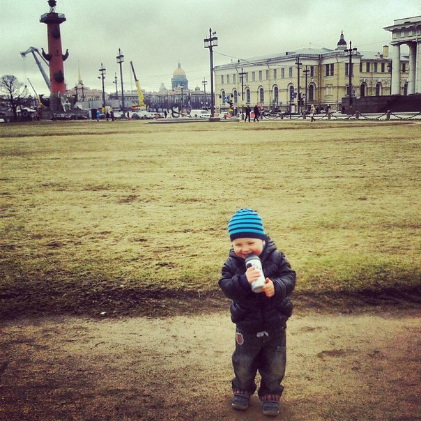 Потом прогулялись на Васильевском. В Румянцевском саду, где гуляла и я в колясочке, и Ваня в колясочке, а теперь вот бегает.