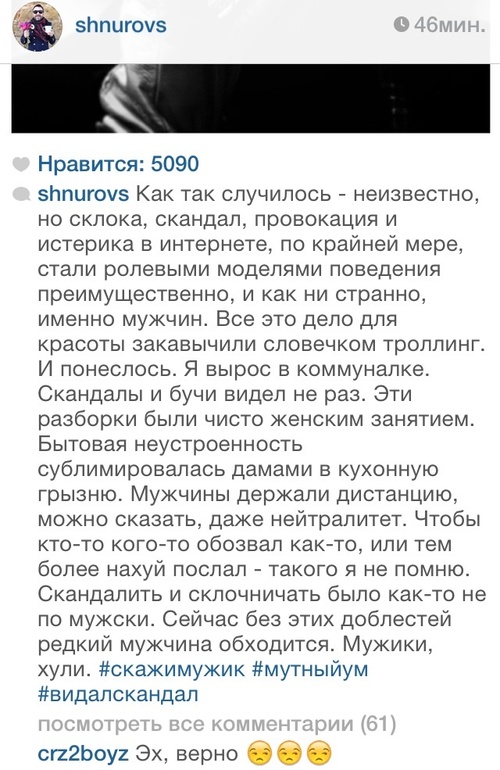 Но Шнур не дурак и по роду деятельности натаскан отражать реальность как десятиклассник на ЕГЭ. Получается, что вне мамского сайта к истеричным дурам просто прибавятся истерички мужеского полу? Так их еще больше станет?)) О, ужас, вот жеж засада.