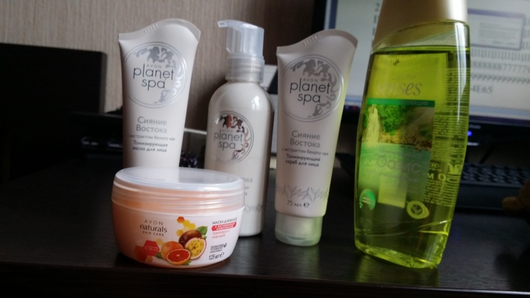 Это наборчик от Эйвон, набор льняных полотенчиков, чаек липтон, вкусные конфетки, шапочка и совушки-сережки.