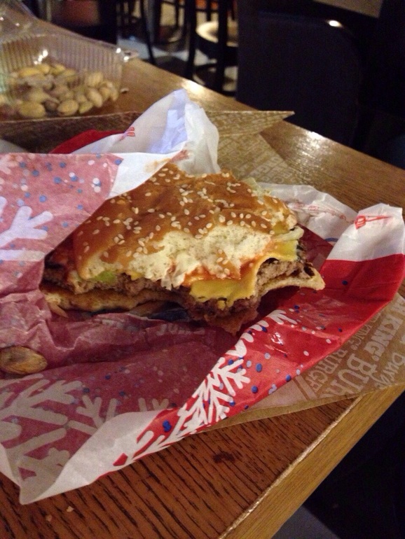 В аэропорту у него аппетит появился при виде гамбургера, он съел львиный кусок от него и потопал, точнее был отбуксирован на посадку в самолет.