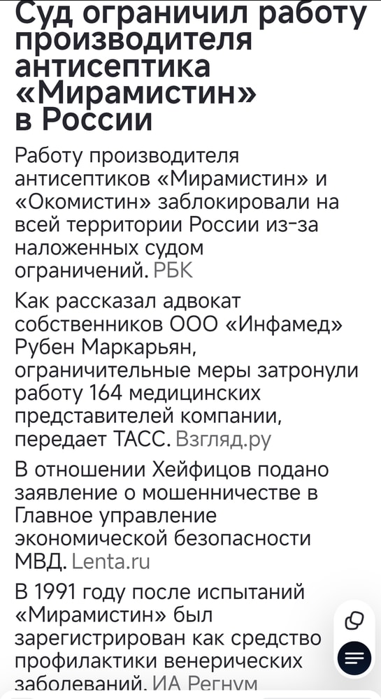 Смородинка, с препаратом все нормально. Пишут, что компания мошенничает. Продали пакет50% акций компании, кому то за 7.5миллоинов рублей(меньше чем цена кв в некоторых городах..) . А настоящая стоимость - больше миллиарда. Вот разбираются.