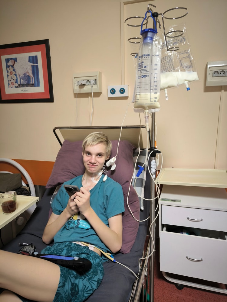 И решение на ближайшую перспективу такое: через пару месяцев, когда заживет канал, сыну поставят гастроэнтеростому. Это такая гастростома, но с длинным «хвостом», который будет проводить питание сразу в кишку, минуя вялый желудок. У нее будет два выхода: один для кормления сразу в кишку, минуя желудок, а второй – для декомпрессии, то есть чтобы можно было сливать из желудка то, что в нем застаивается.