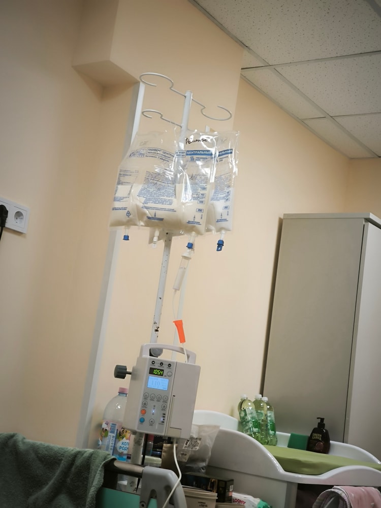 Наша еда- кабивен. Сегодня уже два пакета: один жёлтый, с витаминами, а второй — просто белый, базовый. И скорость капельницы увеличили. А ночью, в три часа, нужно будет переставлять систему с одного пакета на другой. В один не сольёшь, таковы правила. Я об этом даже не думала, когда всё начиналось. Такие мелочи, а сколько хлопот.