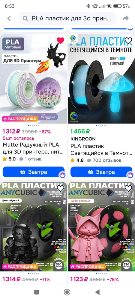 Его последнее увлечение - печать на 3 д принтере. Он моделирует сам или использует готовые построенные схемы. Планов много, а пластик уходит мигом. Поэтому его очень обрадует любой PLA пластик для 3d принтера. нужен именно с маркировкой PLA.