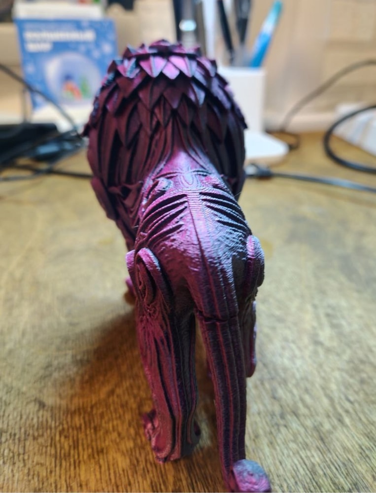 Покажу вам из нового: лев получился двух цветов с плавным переходом. С одной стороны черный, с другой малиновый.