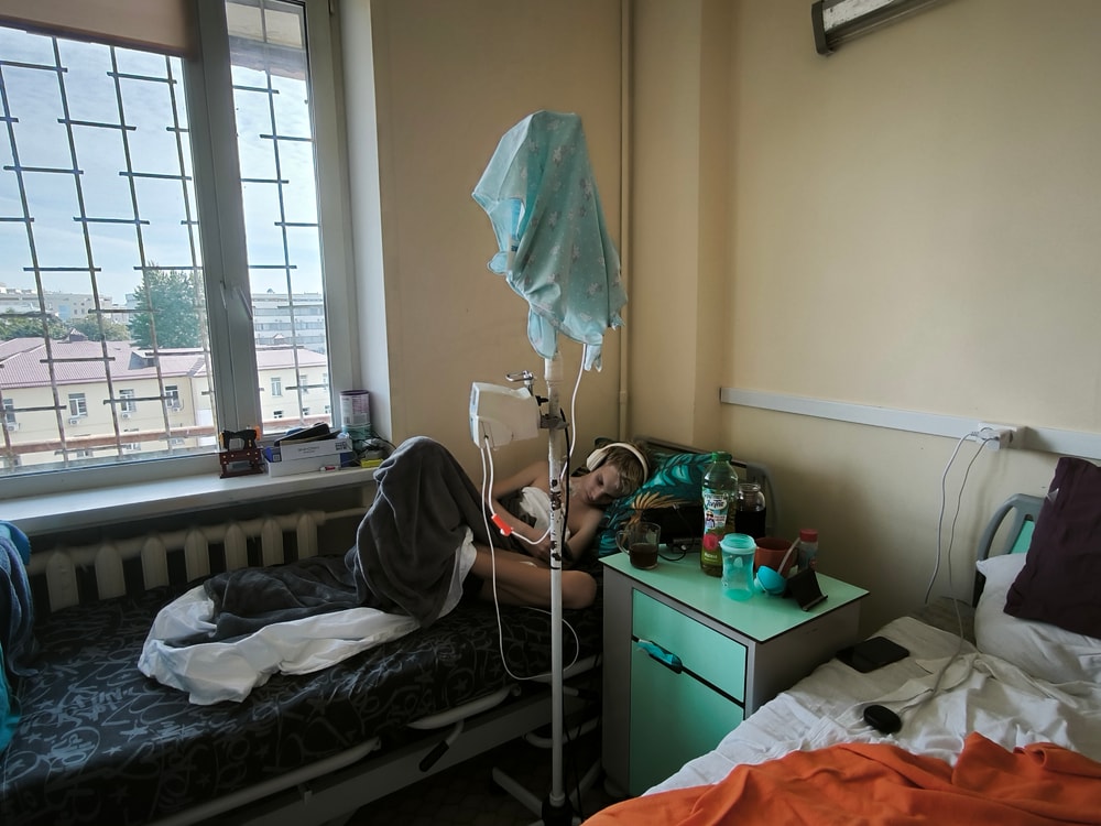 Стоек для капельниц нормальных нет. В туалет приходится ходить и носить с собой капельницу и аппарат. Сначала была стойка без колес. Сей