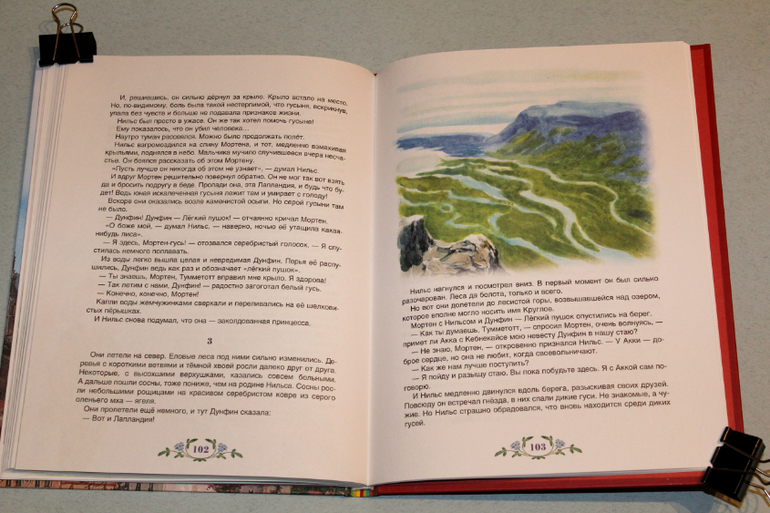 Elisnew интересовалась у меня иллюстрациями Людмилы Пипченко к книге "Чудесное путешествие Нильса с дикими гусями", оказывается в интернете практически нет фото разворотов этой книги. Я решила исправить данную ситуацию, отсняла большую часть иллюстраций. Книга богата рисунками, на 125 страниц всего 11 разворотов без картинок.
