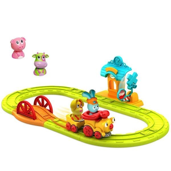 такую доргу купила. это наш первый паровозик. дочка любит интерактивные игрушки. К паровозу отнеслась с опаской,смотрела издалека,как я играю)))но потом подошла.и начала крушить. ИГрушка все же для деток постарше. больше всего ей понравилась касса билетная))