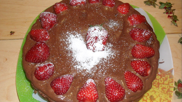 На улице льет второй день, поэтому все что можно уже переделано, вот решила уже от скуки побаловать своих и себя клубничным тортиком, благо лето не за горами. Основа бисквит, пропитала шоколадным ганашем и бананами, сверху украсила моей любимой клубникой.