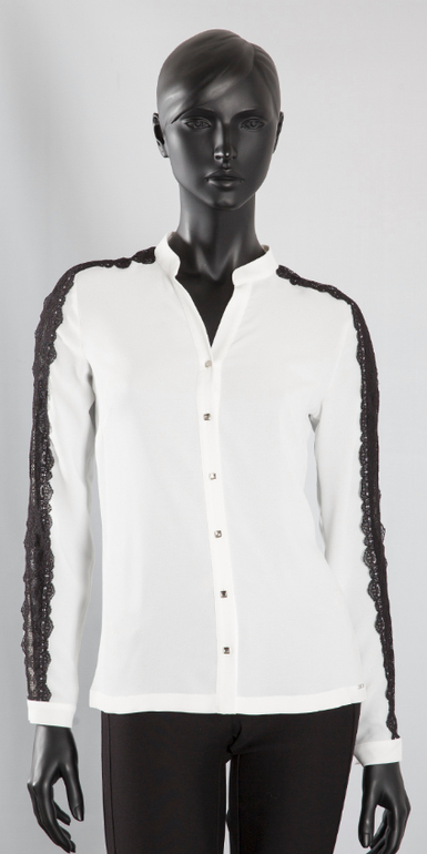Белоснежная блузка с черным кружевом арт. 24-324 - 36,38,40,42,44 -