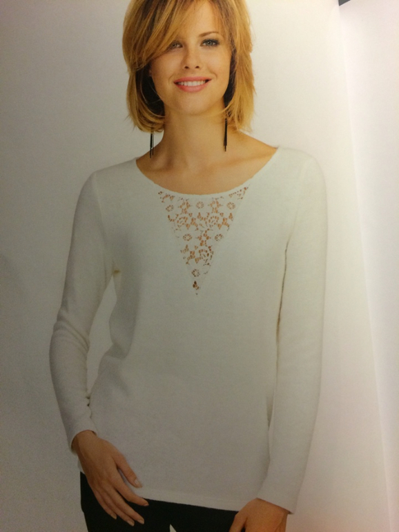 Белоснежный джемпер с кружевом (в составе шерсть 30%) арт. 19-276 - 36,38,40,42,44 -