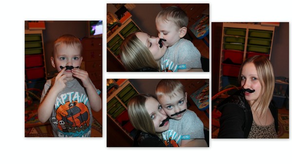 Так вот Димуле досталась тарелочка и 3 классных обучающих пособия, киндеры, и кто - то подарил...накладные усы. Да, вот такой вот эмм...интересный подарок ) Ржали весь вечер.