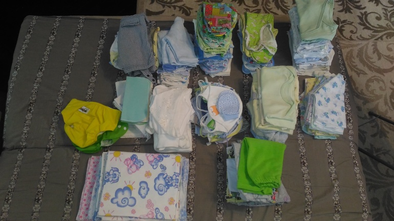 Помимо этого пеленки трикотаж 4, фланель 5 и ситец 2) и еще не купила коконы для сна хочу попробовать и на молнии и на липучке по штучке)))