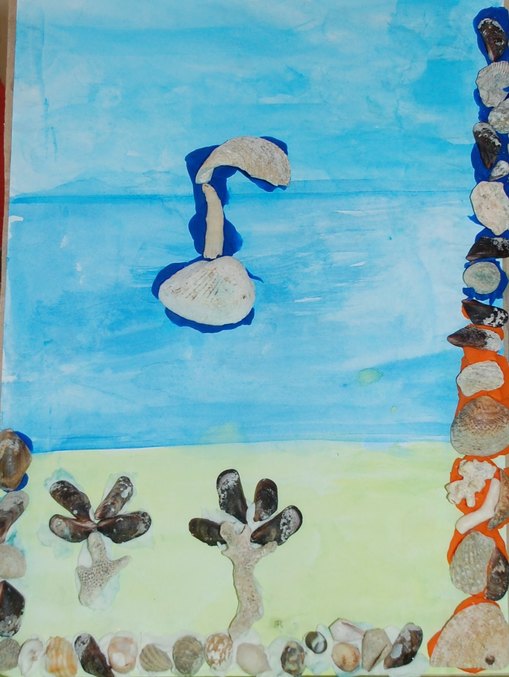 Бумага А4, акварель, пластилин, ракушки, кораллы. "Белеет парус одинокий в тумане моря голубом!" ...)))