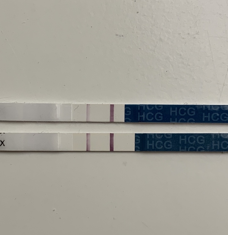 вот тестики,верхний вчерашний,нижний сегодня,все тесты делаю днем.Завтра на первое хгч!Держись мой малышик,останься со мной🙏🏻