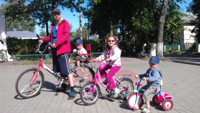 Ох красавцы, группа в розовом колёре) Я только не поняла, у папы такой же велик?