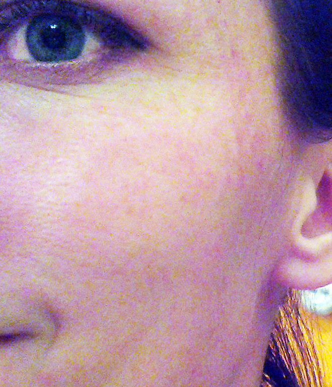 Хотела сделать наглядное фото. Но получилось совсем размыто. Это через час после процедуры. Вверху, в районе виска единственный след от укола.