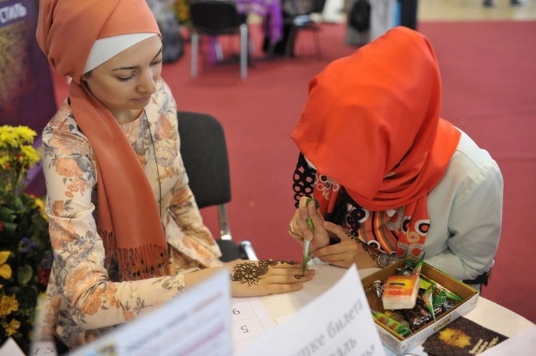 Мода, красота, здоровьеА в соседнем павильоне шла выставка одежды и прочего в восточном стиле. Она и сегодня еще идет . Так целые толпы женщин в таких одеждах туда шли от метро. И у всех все яркое, стильное. Аксессуары дорогие и почему-то видно что оригиналы. В общем, хотелось смотреть и смотреть на них. Пробежала стайка совсем молоденьких, щебечущих. У одной поверх такого традиционного платья была одета широчайшая белая майка с огромной черной надписью Шанель. Восточная неформалка, пожалуйста вам. )))) Сфотографировать постеснялась )))))