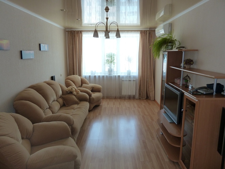Со старой квартиры тоже уже устаревший вариант, 10 летней давности. Тогда круто было, ткани дорогие, на заказ,сейчас примитивом кажется)))