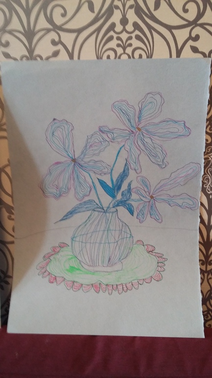 А это Левина работа. Занимается вместе с Вероникой. Спрашивала, сам он рисует или препод его рукой водит. Вероника говорит что сам. Препод только говорит ему что как и где, а рисует сам.